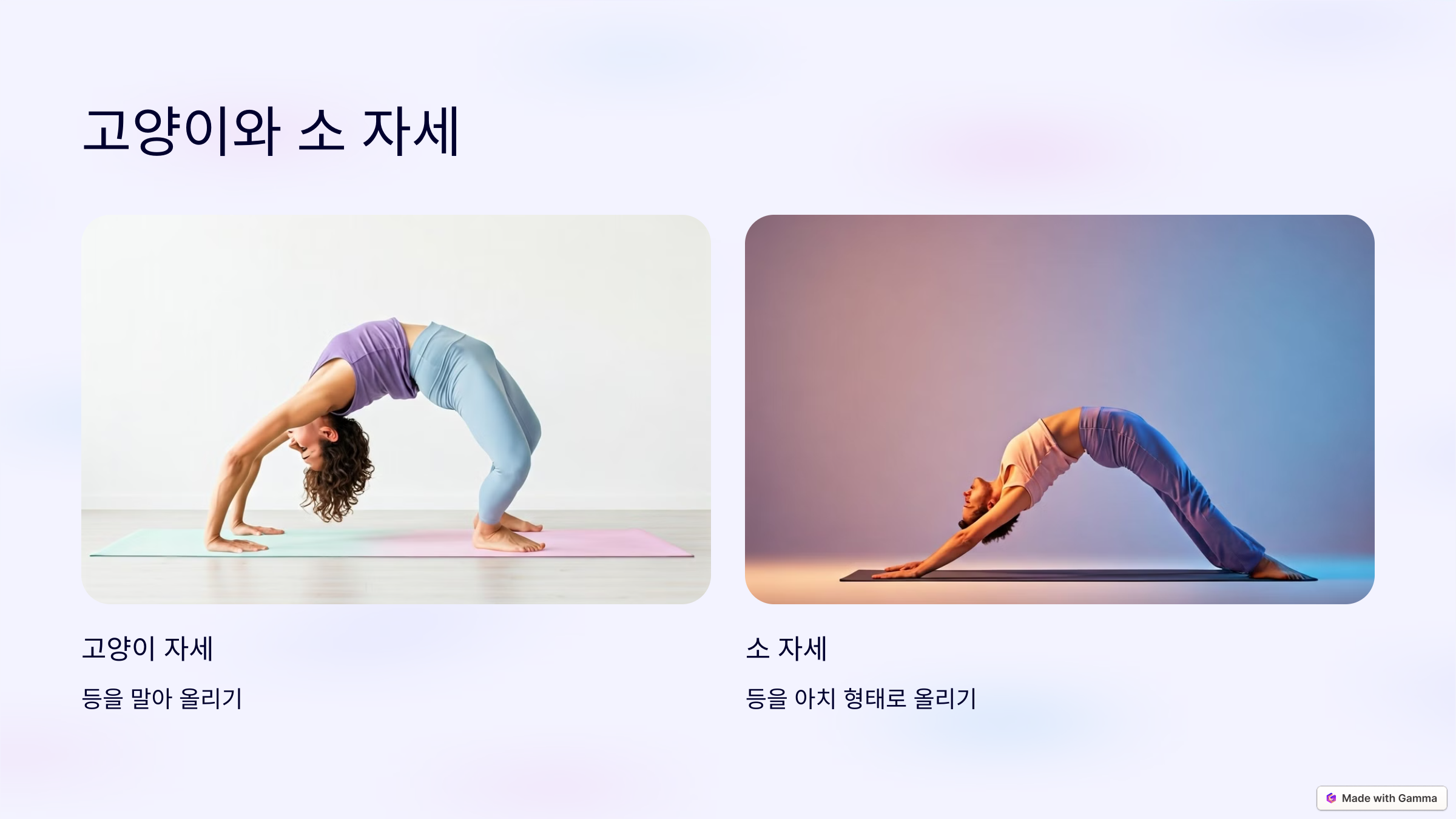 고양이와 소 자세는 요가 동작으로 등과 허리의 유연성을 높여줍니다.