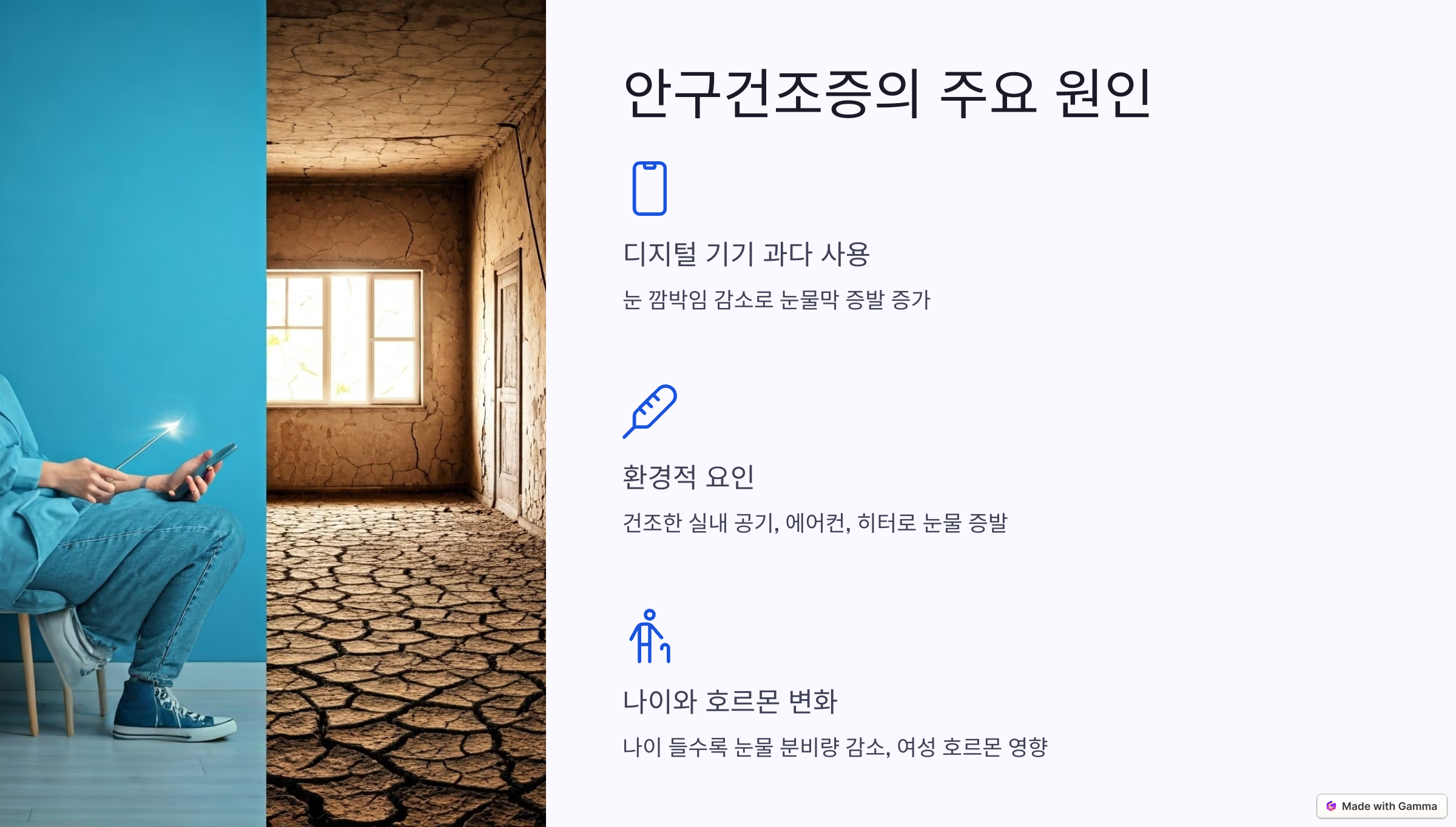 요즘 현대인들 사이에서 가장 흔하게 나타나는 불편함 중 하나가 바로 안구건조증입니다. 스마트폰, 컴퓨터 등 디지털 기기 사용 시간이 늘어나면서 눈의 피로와 건조함을 호소하는 분들이 많아졌죠. 안구건조증은 눈물이 충분히 생성되지 않거나 눈물이 빨리 증발하면서 눈이 불편하고 따가운 증상이 나타나는 질환입니다. 일상에서 디지털 기기를 자주 사용하는 분들이 특히 안구건조증에 걸릴 위험이 높은데요. 이번 글에서는 안구건조증의 원인을 자세히 살펴보고, 이를 예방할 수 있는 실질적인 방법들을 소개하겠습니다.