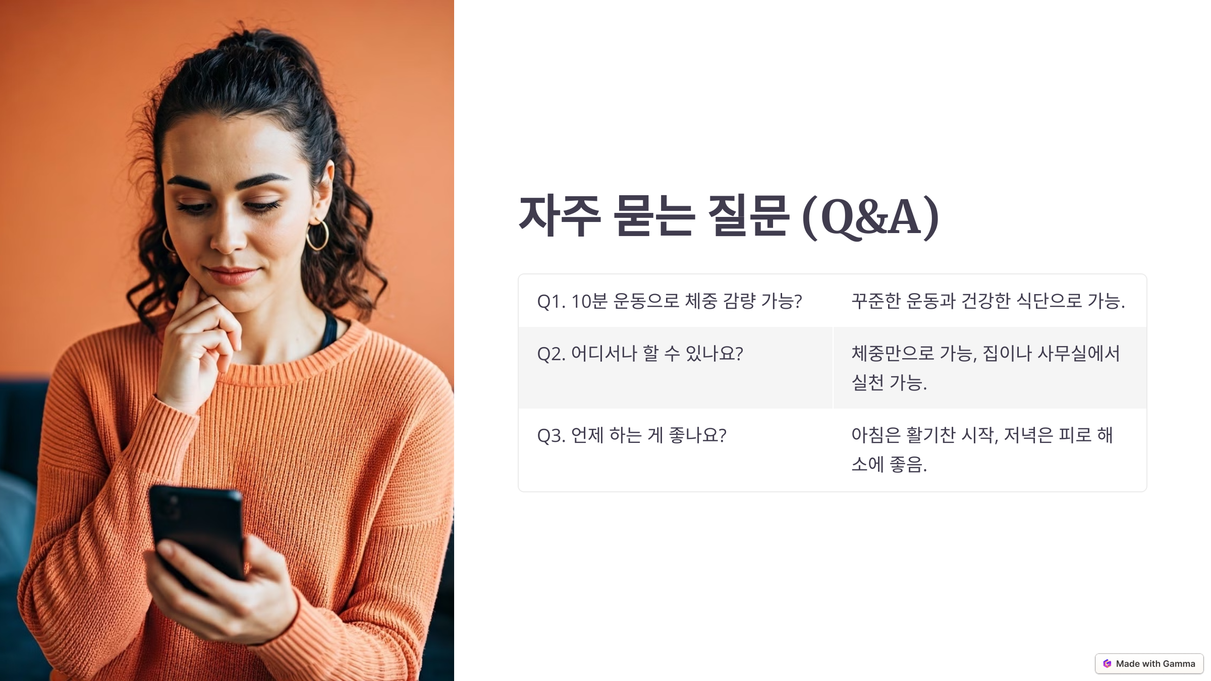 Q1. 하루 10분 운동으로도 체중을 감량할 수 있을까요?